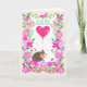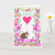 A pretty Valentine's Day greeting card for your Husband that features a cute, smiling hedgehog, carrying a big, deep pink, heart-shaped balloon. The front cover has a border of flowers of various kinds in shades of pink and there is also a pink butterfly, a bumble bee and a ladybird, enjoying the flowers, all on a white background. The front cover greeting is, 'To my dear HUSBAND in green lettering and the inside message is just a suggestion and you can easily change it - or delete it altogether - if you prefer a 'blank inside' card.