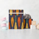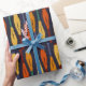 This fun wrapping paper features a pattern of juggling clubs. The realistic style pen and ink illustrations are in red, yellow, orange, green and blue and set against a navy blue background.