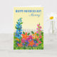 A very pretty Mother's Day card for your mummy, with a brightly coloured flower bed, made from a hand-painted paper collage. The flowers are tall and small, red, pink, orange and shades of blue, with a white picket fence behind them, against a sunshiny yellow background. The front cover greeting in deep blue lettering, is 'HAPPY MOTHER'S DAY to a very special Mummy!' The inside message is just a suggestion and you can easily change or delete it if you wish.