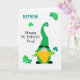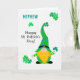 A fun greeting card for your nephew on St. Patrick's Day, with a cute leprechaun, holding a shamrock. The leprechaun has a very tall hat, in a green pattern, a big ginger beard, a huge nose, striped sleeves and socks and black shoes. At the top, in dark green lettering, is the word, 'NEPHEW' and the inside message is easy to customize or delete.