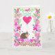 A pretty Valentine's Day greeting card for your Partner that features a cute, smiling hedgehog, carrying a big, deep pink, heart-shaped balloon. The front cover has a border of flowers of various kinds in shades of pink and there is also a pink butterfly, a bumble bee and a ladybird, enjoying the flowers, all on a white background. The front cover greeting is, 'To my dear PARTNER in green lettering and the inside message is just a suggestion and you can easily change it - or delete it altogether - if you prefer a 'blank inside' card.