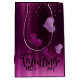 special for Valentine's Day purple pouch with purple background (pink dough violet) and loose hearts of purine and pink purine on the edges of the bag.