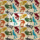 Create gifts and more for your favourite skater with this patterned fabric. Features illustrations of skateboarders in dark red, orange, mustard yellow, green, turquoise blue and charcoal grey against a faux woodgrain background.