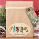 Add a name or a slogan to create your own custom stickers. These stickers feature illustrations of skateboarders in rust orange, turquoise blue, dark red, mustard yellow and green set against a faux woodgrain background. Your text appears below in charcoal grey coloured lettering.