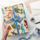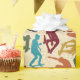 Wrap up gifts for your favourite skater in style with this patterned wrapping paper. Features illustrations of skateboarders in dark red, orange, mustard yellow, green, turquoise blue and charcoal grey against a faux woodgrain background.