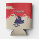 Create a fun personalised gift for your favourite snowmobiler. They'll love keeping their drink as cold as ice with this snowmobile themed can sleeve. It has a vintage style illustration of a snowmobile and rider in navy blue set against a backdrop of cream or ivory coloured mountains against a red background. It's ready to be personalised with a name in cream and blue coloured lettering. The same graphic and text appear on both sides.