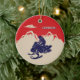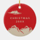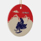 Create a personalised gift for your favourite snowmobiler. This Christmas tree ornament has a vintage style illustration of a snowmobile and rider in navy blue set against a backdrop of cream or ivory coloured mountains against a red background. It's ready to be personalised with a name in cream and blue coloured lettering.