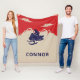 Create a personalised gift for your favourite snowmobiler. It's perfect for warming up after a chilly day out snowmobiling. This custom fleece blanket has a vintage style illustration of a snowmobile and rider in navy blue set against a backdrop of cream or ivory coloured mountains against a red background. It's ready to be personalised with a name in navy blue coloured lettering.