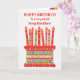 You can add the age to this brightly colored birthday card for your stepbrother, with a strawberry birthday cake. The cake has lots of candles with different patterns and there is a patterned band around the cake with colorful summer fruits - strawberries, raspberries, limes and orange slices. Above the cake, the greeting, in red lettering, is 'HAPPY BIRTHDAY to a very special Step Brother' and on the cake there is a space for you to add the age, followed by 'years old today!' in white lettering. Please feel free to customize the inside message if you wish; you can change the font and the color as well as the message.