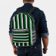 This abstract backpack features a deep green background accented with deep red, black, and white artistic lines, creating a striking balance between nature-inspired calm and bold expression. Designed for those who appreciate art in motion, it’s the perfect way to turn everyday moments into a style statement.