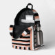 This abstract backpack combines warm tones and artistic design, featuring a soft peach background accented with white, light peach, and black lines. The balance of colours gives it a modern, elegant look that stands out with subtle confidence.