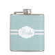 Very cute "Polka Dot Hip Flask". White polka dots on a sea foam green blue background. A pretty ribbon, with a matching bow on the back. The text sample shows "Bride" on this whimsical flask, customise the text to suit your needs. Makes a wonderful "bridesmaid thank you gift". Don't forget a "wedding flask" for all the bridal party including the groomsmen and groom! To see more great products-Please visit my store "The Hungarican Princess" at www.zazzle.com/hungaricanprincess*.