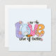 This cute and colourful design features the phrase "For The Love of Easter" with the colourful letters of the word "Love" with a cute bunny and easter egg. It is perfect for the Easter Sunday celebrations and a gift for easter.