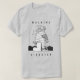 Slogan says "Walking Disaster". A light-hearted, funny cartoon, showing a patient wrapped in bandages and with a leg in plaster, using a crutch. Accident prone t-shirt.