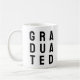 For the Newly Graduated. A Graduate Coffee Mug says "graduated" with the word split over 3 lines.