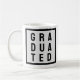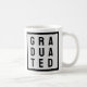 For the Newly Graduated Student. A Student Graduate Coffee Mug says "graduated" with the word split over 3 lines and contained within a box frame.