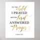 Calligraphy typography design in elegant black letters with fancy glyphs and alternatives and ornamental swash reads, "For This Child I Prayed and the Lord Answered my Prayer." Scripture is from 1 Samuel 1:27.