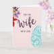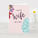 Designed with a soft blush pink background, this card sets a gentle, romantic tone right away. Centered in large deep plum lettering is the word “wife,” drawing the eye like a quiet, affectionate promise. Above it, “FOR YOU” sits in smaller, dark serif text, and below, “WITH LOVE” mirrors it in the same style, creating a tidy vertical layout. In the upper left corner, a small bouquet of painted flowers leans inward, with petals in lavender, sunny yellow, and deep crimson, plus muted green leaves that feel tender and close, like a shared moment 🌷. The watercolor shading keeps the edges soft, as if the blooms were brushed on with care for someone special. In the lower right, a large light teal egg shape is partly cropped off the edge, adding a festive Easter touch 🐰. Across the egg, thin white swirls loop and curl in delicate patterns over the pale teal wash.