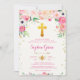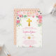 This floral Christening Invitation is adorned with gold touches and watercolor flowers that are arched over a gold cross. All together makes the perfect invitation for your beautiful Christening celebration!