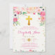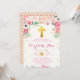 This floral Communion Invitation is adorned with gold touches and watercolor flowers that are arched over a gold cross. All together makes the perfect invitation for your beautiful Communion celebration!