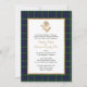 Elegant and traditional clan Forbes tartan plaid, sets the backdrop for this Scottish inspired wedding invitation. Graphics of a gold edged white text overlay has graphics of a gold thistle, at the top. All text is ready to personalise for your special day. Matching products are available.