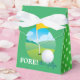 Perfect for golf outings, retirement parties and birthdays. This is a tent style design has a green background. On the front and back there is an image of a golf green.In the foreground there's a golfball and the word "FORE the Golfer". The two side panels have light green circles.