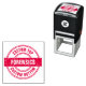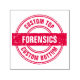 Red forensics stamp with three custom text fields and removable distressed texture.