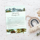 Enjoy playing this Advice for the Mummy-to-be baby shower game. This is an adventure begins theme, with a momma and baby bear on back. This design has rustic forest, watercolor mountains with reflecting lake in front, and pine trees surrounding the lake. Baby bear cub on back with game.