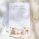 A cute baby advice & predictions card featuring an adorable collection of woodland creatures and elements, including a bunny rabbit, an owl, a racoon, a bear, a squirrel, a fox, a deer, a hedgehog, a ladybug, a robin, pine cones, mushrooms, flowers, sprigs, and berries. There is space for the guests to write their birth predictions, resemblance predictions, and advice for the new parents. This activity card was made to match our Woodland Forest Animals & Bearly Wait Baby Shower collection. View the collection linked on this page to see the full set. Feel free to message me with any questions, I'll be happy to help!