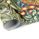 FOREST ANIMALS,RAVEN,FOX,PEACOCK Blue Green Floral Wrapping Paper