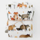 Stylised watercolor style forest creatures like foxes, bears and wolves on a white background, sprinkles with leaves and simple trees.