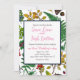 Forest berries, leaves and bugs on white invitation
