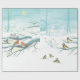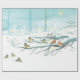 Winter birds in a snowy forest on a cold sunny day. Tit birds, Robin redbreasts and Common chaffinch - Picture book Illustration.