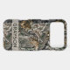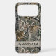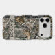Customize this forest branches camouflage iPhone 17 pro max case with your name in a trendy modern CAP font in gray on opaque cream. It's masculine and perfect for your favorite military, hunting, country or outdoorsman!