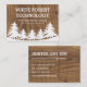 These business cards feature a forest and landscape in white over a faux wood grain background in brown. Embrace the forest and outdoors theme for your business! You can customise the sample text fields to your liking.