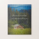 Jigsaw puzzle featuring a lonely wooden cottage under the mountains. This spectacular image captures the essence of summer travel and showcases the tranquillity and peace that can only be found in the arms of Mother Nature. It will transport you to a world of breathtaking scenery and fill you with the rejuvenating energy of the wilderness. Perfect gift for nature lovers and hiking enthusiasts. Change the text for any occasion you wish (click "Personalise this template").