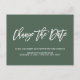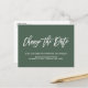 Need to postpone or reschedule your wedding? Alert your guests that your wedding date has changed with this Elegant Wedding Postponement or Date Change announcement featuring a trendy script lettering saying "Change the date" in white over a contemporary forest green background.