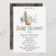 This baby shower invitation features pine trees, a fox, and a rustic wood background. Created for a gender neutral baby shower, this invitation is sure to impress your guests.