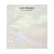 A notepad with a bright green forest with a pretty winding creek. Brown leaves cover the forest floor, providing a nice contrast with the lush greenery of these magical woods.