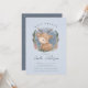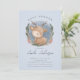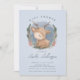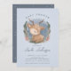 Sweet winter baby baby shower design featuring a sleeping baby deer with pine branches and berries set on a light blue snowy background. Visit our shop to view our entire winter woodland animals design collection.