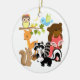 Our Forest Friends T-shirts, bodysuits, mugs, bags, cards, wall clocks, keepsakes, magnets, plates, and other items features adorable forest animals including an owl on a branch, a blue bird, brown bear, red fox, skunk, racoon, squirrel with acorn, and a deer!