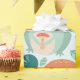 A whimsical pattern featuring cheerful frogs, vibrant mushrooms, leaves, flowers, and water droplets in a colourful, playful arrangement against a light pastel background. This design captures a lively woodland atmosphere.