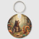 Whimsical forest scene featuring friendly animals conversing, surrounded by colourful mushrooms and blooming flowers.