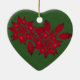 Forest Green and Red Poinsettia Ceramic Ornament