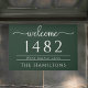 Charming and classic custom doormat features "welcome" in elegant script paired with your family’s last name, address and house number. Designed with clean stripe accents, this doormat offers a timeless look that can be personalised to match your entryway.