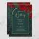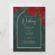 Forest Green Gold RED Roses Winter Wedding Invitation