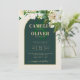 Forest Green Gold White Roses Winter Wedding Invitation