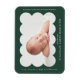 Modern birth announcement magnet featuring your baby's photo nestled inside of a forest green scalloped frame. Personalise the forest green birth announcement magnet by adding your baby's name and additional information in white lettering.