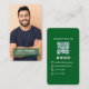 Create a bold and professional first impression with this forest green photo QR code design. Featuring a clean minimalist layout, full photo front, and scannable QR code on the back, this modern design makes sharing your contact details simple and stylish. Perfect for professionals, contractors, and entrepreneurs, this customizable design allows you to add your photo, social links, and contact information for a polished and memorable networking essential.
