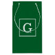 Forest Green White Framed Initial Monogram Small Gift Bag